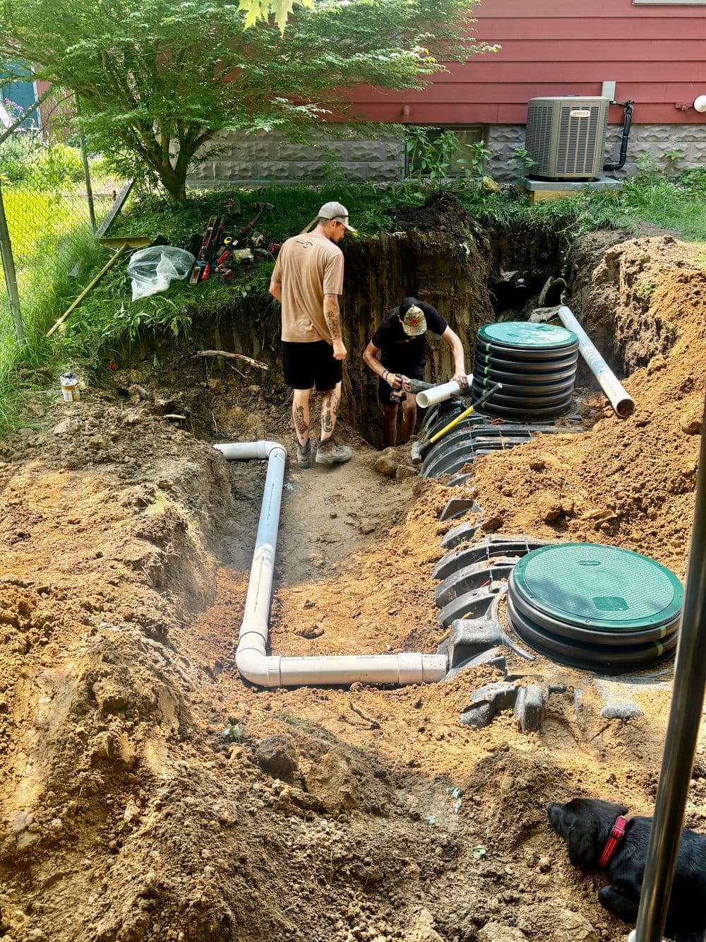 "We live in an old house that has been having issues with drains and septic for years. We have routinely had to have our drains snaked and septic tank pumped. Our main drain started to back up again and we had a plumber out who informed us the main septic line from our house to our tank completely collapsed. It was probably failing for years and causing most of the issues we were dealing with that no one else caught. Greeeeatttttt. We had to rip apart our deck and trench to the pipe which was completely ruined. We called a few septic companies to come give us a quote and help us figure out what to do. The whole thing was extremely stressful and not being able to use any water in the house left us very frustrated. I am so grateful we called Carlson Outdoor Services. They were the third and last company I called. Logan and his team were incredible. He answered right away and listened to me panic-ramble about a situation I barely understood. He assured me he could come out that day to give us a quote. Logan and Kai came out, assessed the situation and used a camera to show me our pipe had collapsed the rest of the way to our tank. He traced the pipe to ensure the location and gave me a beyond reasonable quote. Even better news was that he could come and do the work the next day! I felt confident about going with Carlson Outdoor which was refreshing as I usually second-guess my decisions. Logan arrived with another worker who completed the job in about three hours! They were SO friendly, ambitious, kind and professional. Everything you want in a service pro and business! They answered all 1,484,393 questions I had and took pictures of the schematics for my husband. They were extremely careful with our gas line and property. Logan even spent time afterwards explaining things about the new setup and showing me the flow from the new clean out to the tank. I appreciate that so much. We can't recommend this company enough! We plan to use Carlson Outdoor for more projects in the future without question. It is so nice to know we have someone local we can trust. We had had some rough experiences and this was truly one of the best! TLDR: HIGHLY recommend Carlson Outdoor Services. Logan and crew are kind, patient, friendly, professional and quick! The service was thorough and the price was very reasonable. They will treat you like family and like your business is truly important to them. Service like that is so hard to come by these days. Call them! You won't regret it."